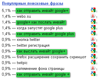 Как вы сами видите, большинство посетителей из тех, кто пришел с поисковиков — искал ответ на вопрос «Как отправить инвайт google+» и подобные интерпретации.