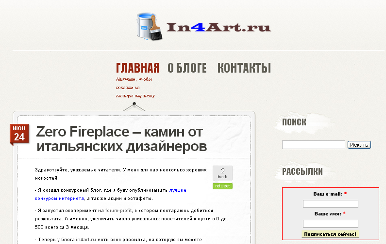 Первым на обзоре сегодня блог о дизайне in4art.ru.