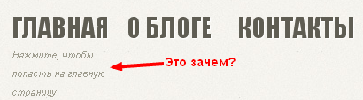 Не понял только, зачем под ссылкой на главную написано объяснение, что нажимая на нее мы попадем на главную. Возможно это по умолчанию в теме, не знаю, но если это можно убрать — я бы убрал.