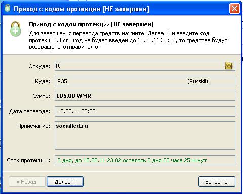Деньги получил через пару часов, через webmoney с протекцией — на почту прислали код, который надо было ввести в кошельке при получении денег, собственно, чтобы они перекочевали ко мне в кошелек.